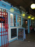 We once again ate up a big tasty English breakfast, then headed to the beach for some much needed relaxation after being on our feet all Saturday. We took a badminton set with us and trash talked mightily about who would kick who’s butt. Truthfully, neither of us could hit the broad side of a barn but that is not the point, and we didn’t get much of a chance to show off our badminton prowess anyway. The first shuttle cock was destroyed after 2 hits when the old rubber tip cracked off and by the time we got the second shuttle cock out to the beach, the wind made playing rather difficult. When David went to hit it, it would either blow directly back at him or get stuck in the loosely strung racket. After David managed to get himself a little sunburn on the back of his ankles (looks slightly like pink socks) we decided to go find some food.